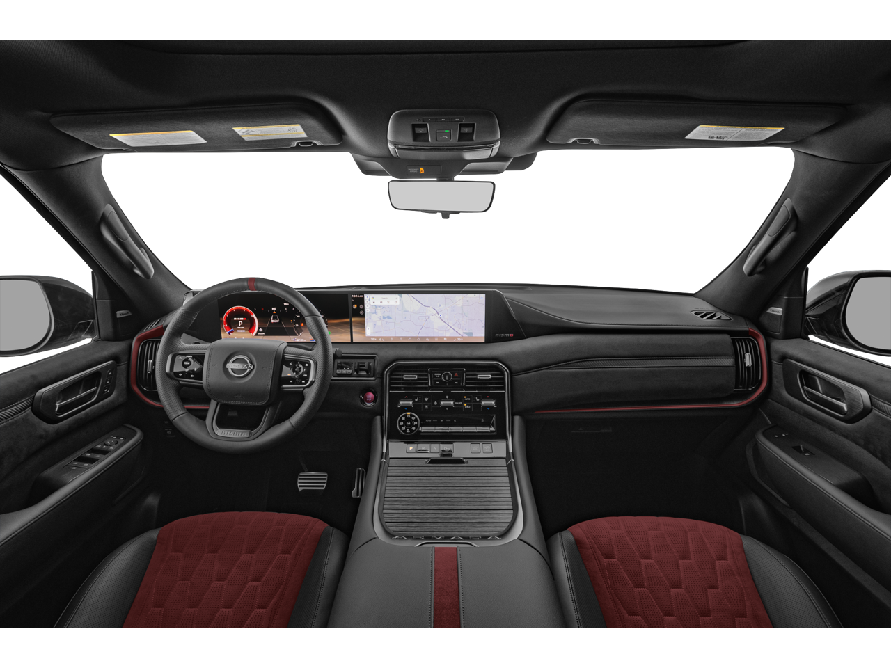 Everest White Pearl/Black 2026 Nissan Armada NISMO 4WD 9-Speed Automatic 3.5L DOHC 4WD, 12 Speakers, 3rd row seats: split-bench, 4-Wheel Disc Brakes, ABS brakes, Adaptive suspension, Air Conditioning, Alloy wheels, AM/FM radio: SiriusXM w/360L, Anti-whiplash front head restraints, Apple CarPlay/Android Auto, Auto High-beam Headlights, Auto tilt-away steering wheel, Auto-dimming door mirrors, Auto-dimming Rear-View mirror, Auto-leveling suspension, Automatic temperature control, Brake assist, Bumpers: body-color, Compass, Delay-off headlights, Driver door bin, Driver vanity mirror, Dual front impact airbags, Dual front side impact airbags, Electronic Stability Control, Emergency communication system: NissanConnect Services, Four wheel independent suspension, Front anti-roll bar, Front Bucket Seats, Front Center Armrest, Front dual zone A/C, Front fog lights, Front reading lights, Fully automatic headlights, Garage door transmitter: HomeLink, Genuine wood dashboard insert, Heated door mirrors, Heated Front Bucket Seats, Heated front seats, Heated steering wheel, HVAC memory, Illuminated entry, Knee airbag, Leather steering wheel, Low tire pressure warning, Memory seat, Navigation system: Google Maps, NISMO Carpeted Floor Mats, Nismo Suede Seat Trim, Occupant sensing airbag, Outside temperature display, Overhead airbag, Overhead console, Panic alarm, Passenger door bin, Passenger vanity mirror, Power door mirrors, Power driver seat, Power Liftgate, Power moonroof, Power passenger seat, Power steering, Power windows, Radio: NissanConnect with SiriusXM 360L, Rain sensing wipers, Rear air conditioning, Rear anti-roll bar, Rear reading lights, Rear window defroster, Rear window wiper, Reclining 3rd row seat, Remote keyless entry, Security system, Speed control, Speed-sensing steering, Speed-Sensitive Wipers, Split folding rear seat, Spoiler, Steering wheel memory, Steering wheel mounted audio controls, Super Premium Paint and 2-Tone Roof, Tachometer, Telescoping steering wheel, Tilt steering wheel, Traction control, Trip computer, Turn signal indicator mirrors, Variably intermittent wipers, Voltmeter, Wheels: 22 Forged and Machined Alloy, 4WD.