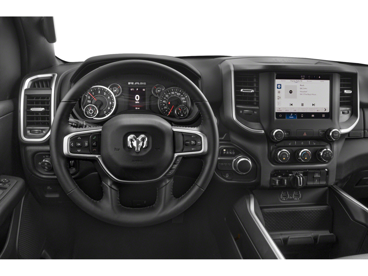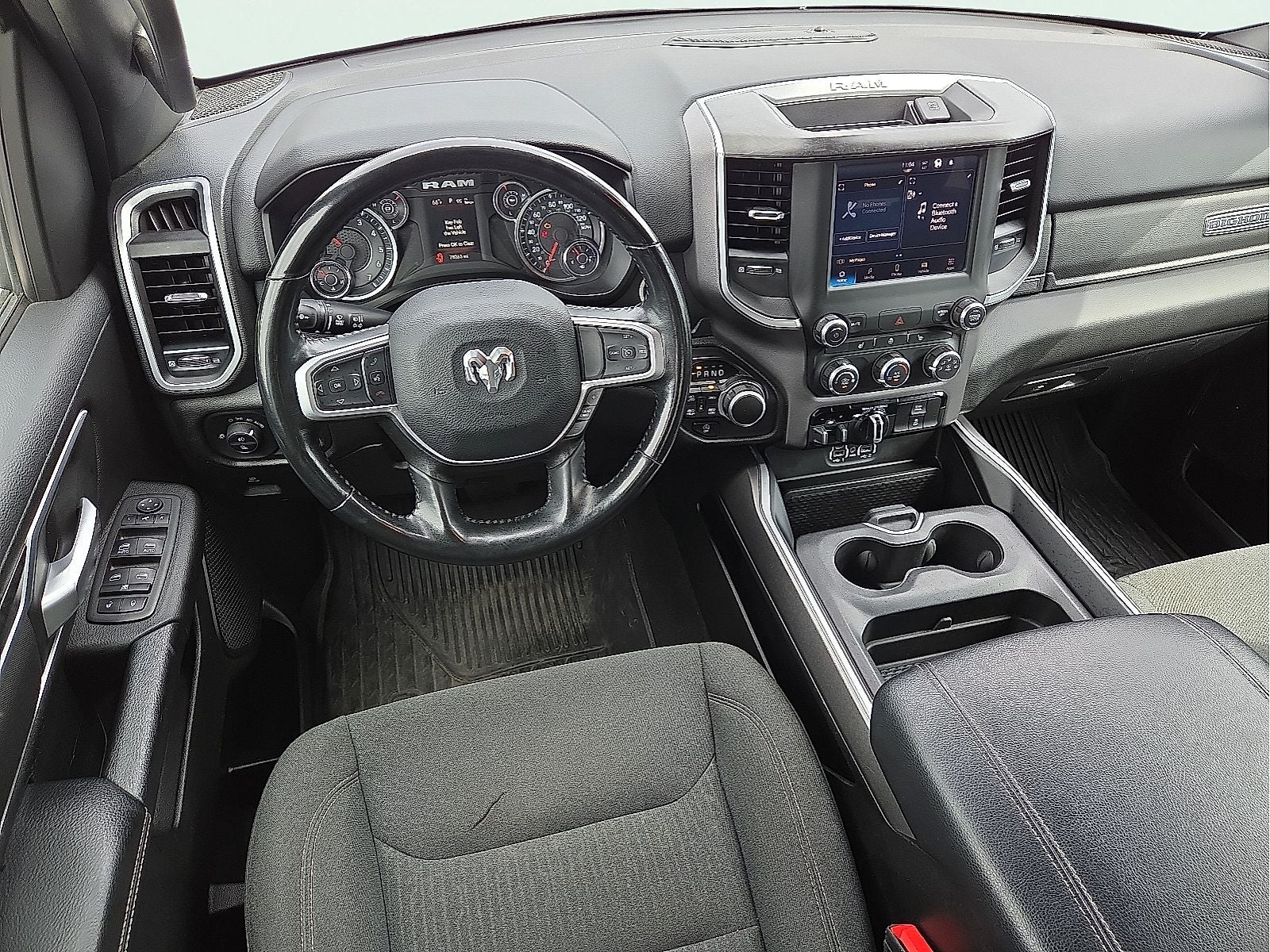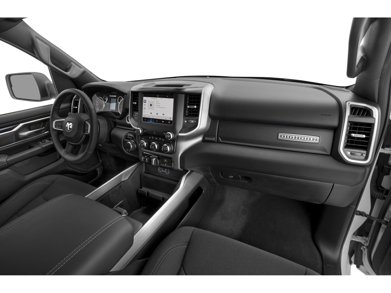 2nd Row In Floor Storage Bins, 3 Rear Seat Head Restraints, 3.21 Rear Axle Ratio, 4 Way Front Headrests, 4-Wheel Disc Brakes, 48V Belt Starter Generator, 4G LTE Wi-Fi Hot Spot, 6 Speakers, 8.4 Touchscreen Display, ABS brakes, Air Conditioning, Alloy wheels, AM/FM radio, Anti-Spin Differential Rear Axle, Apple CarPlay, Auto-Dimming Exterior Driver Mirror, Auto-Dimming Rear-View Mirror, Big Horn Badge, Big Horn Level 1 Equipment Group, Black Exterior Mirrors, Black Interior Accents, Black Premium Power Mirrors, Black Trailer Tow Power Mirrors (DISC), Bluetooth® Handsfree Phone & Audio, Body Color Door Handles, Body Color Exterior Mirrors, Body Color Front Bumper, Body Color Premium Power Mirrors, Body Color Rear Bumper w/Step Pads, Brake assist, Bucket Seats, Bumpers: chrome, Center Console Parts Module, Class IV Receiver Hitch, Cloth Bench Seat, Compass, Connectivity - US/Canada, Convex Wide-Angle Exterior Mirror Insert, Delay-off headlights, Deluxe Cloth Bucket Seats, Driver door bin, Dual front impact airbags, Dual front side impact airbags, Electric Shift-On-Demand Transfer Case, Electronic Stability Control, Emergency communication system: SiriusXM Guardian, Exterior Mirrors Courtesy Lamps, Exterior Mirrors w/Heating Element, Exterior Mirrors w/Supplemental Signals, For Details, Visit DriveUconnect.com, For More Info, Call 800-643-2112, Front anti-roll bar, Front Center Armrest w/Storage, Front Fog Lamps, Front reading lights, Front Seat Back Map Pockets, Front wheel independent suspension, Full Length Floor Console, Fully automatic headlights, Global Telematics Box Module (TBM), Glove Box Lamp, Google Android Auto, GPS Antenna Input, Heated door mirrors, Heated Front Seats, Heated Steering Wheel, Illuminated entry, Integrated Center Stack Radio, Integrated Voice Command w/Bluetooth®, Leather steering wheel, Low tire pressure warning, Manual Adjust 4-Way Front Passenger Seat, MOPAR Front & Rear Rubber Floor Mats, Occupant sensing airbag, Outside temperature display, Overhead airbag, Overhead console, Panic alarm, ParkView Rear Back-Up Camera, Passenger door bin, Passenger Sun Visor w/Illuminated Mirror, Passenger vanity mirror, Power 2-Way Driver Lumbar Adjust, Power 8-Way Driver Seat, Power door mirrors, Power steering, Power windows, Power-Folding Mirrors, Quick Order Package 27Z Big Horn, Radio data system, Radio: Uconnect 3 w/5 Display, Radio: Uconnect 5 W w/8.4 Display, RAM Grille Badge - Chrome, Rear 60/40 Folding Seat, Rear anti-roll bar, Rear Center Armrest, Rear Dome w/On/Off Switch Lamp, Rear Power Sliding Window, Rear seat center armrest, Rear step bumper, Rear Window Defroster, Remote keyless entry, Remote Start System, SiriusXM Satellite Radio, Speed control, Split folding rear seat, Sport Appearance Package, Sport Decal, Steering wheel mounted audio controls, Tachometer, Telescoping steering wheel, Tilt steering wheel, Traction control, Trailer Brake Control, Trailer Light Check, Trailer Reverse Steering Control, Trailer Tire Pressure Monitoring System, Trailer Tow Group, Trailer Tow Mirrors, Trip computer, USB Host Flip, Variably intermittent wipers, Voltmeter, Wheels: 18 x 8 Cast-Aluminum Painted, Wheels: 20 x 9 Aluminum Chrome Clad (WRK). 2023 Ram 1500 8-Speed Automatic HEMI 5.7L V8 Multi Displacement VVT eTorque Bright White Clearcoat